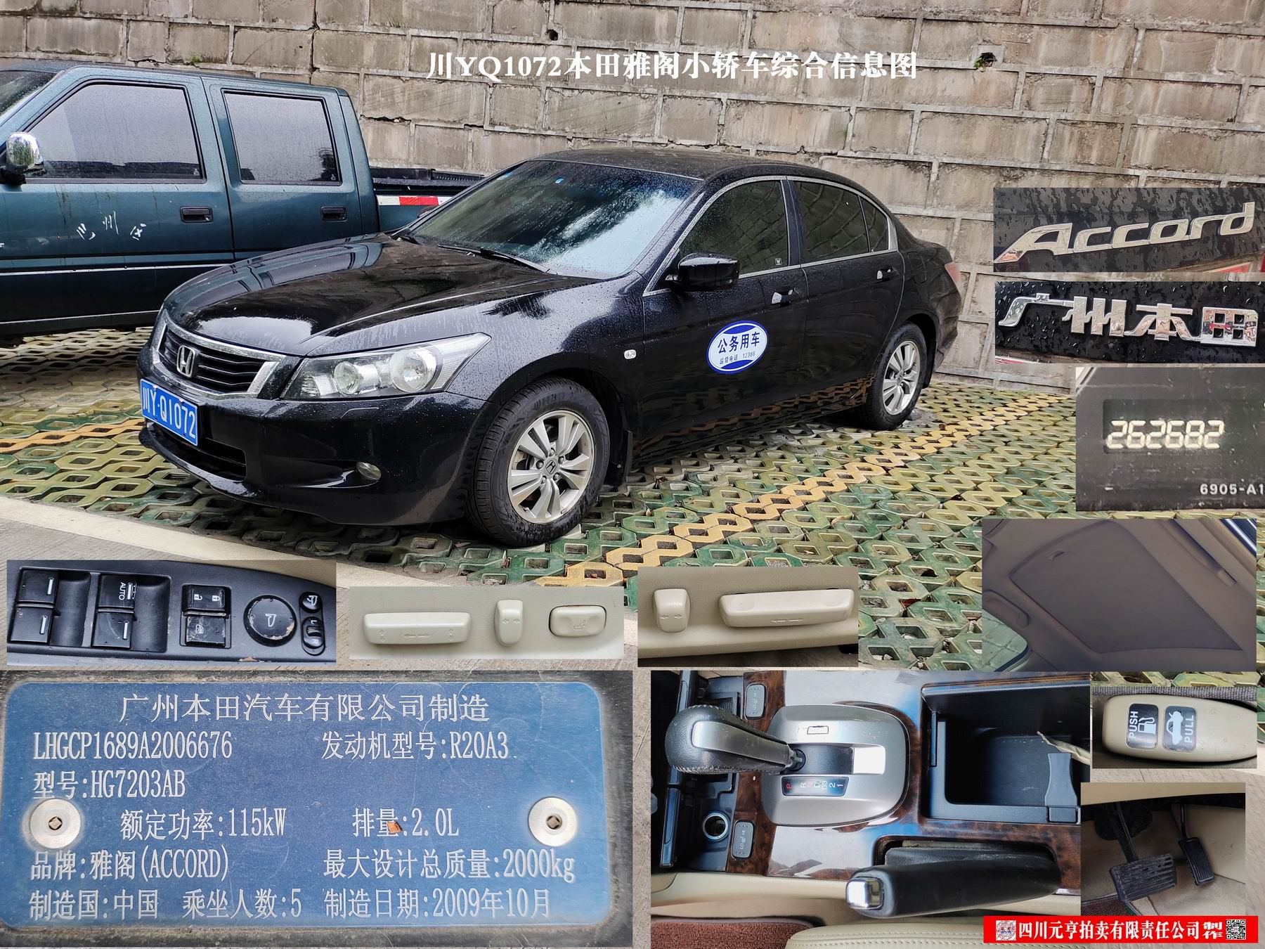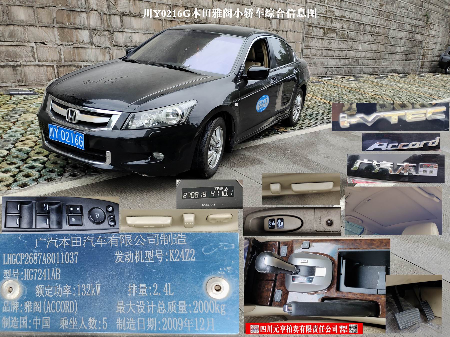 2、雅阁牌HG7241AB小型轿车1部【现川Y0216G本田雅阁】,起拍价4000元。