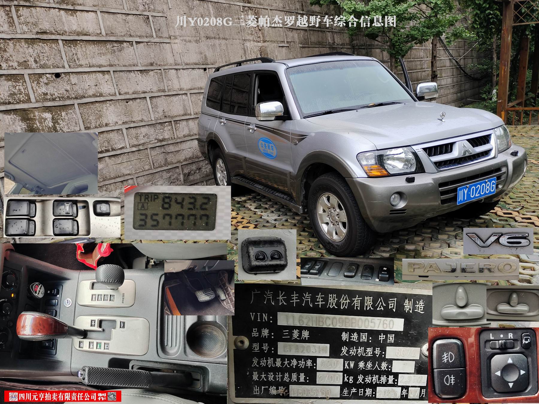 7、三菱牌CFA2031H小型越野客车1部【现川Y0208G三菱帕杰罗】,起拍价18600元。
