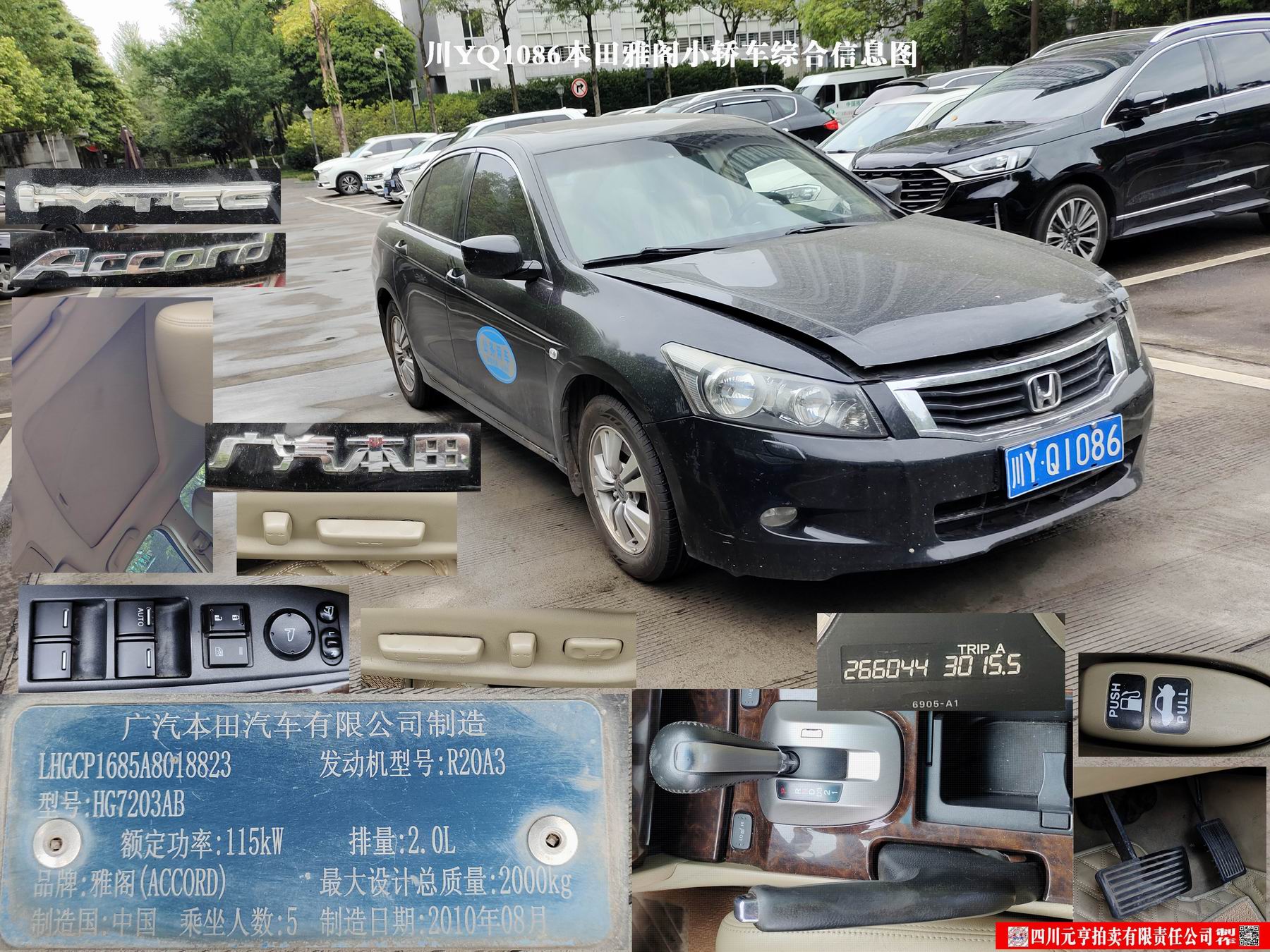 5、雅阁牌HG7203AB小型轿车1部【现川YQ1086本田雅阁】,起拍价4500元。