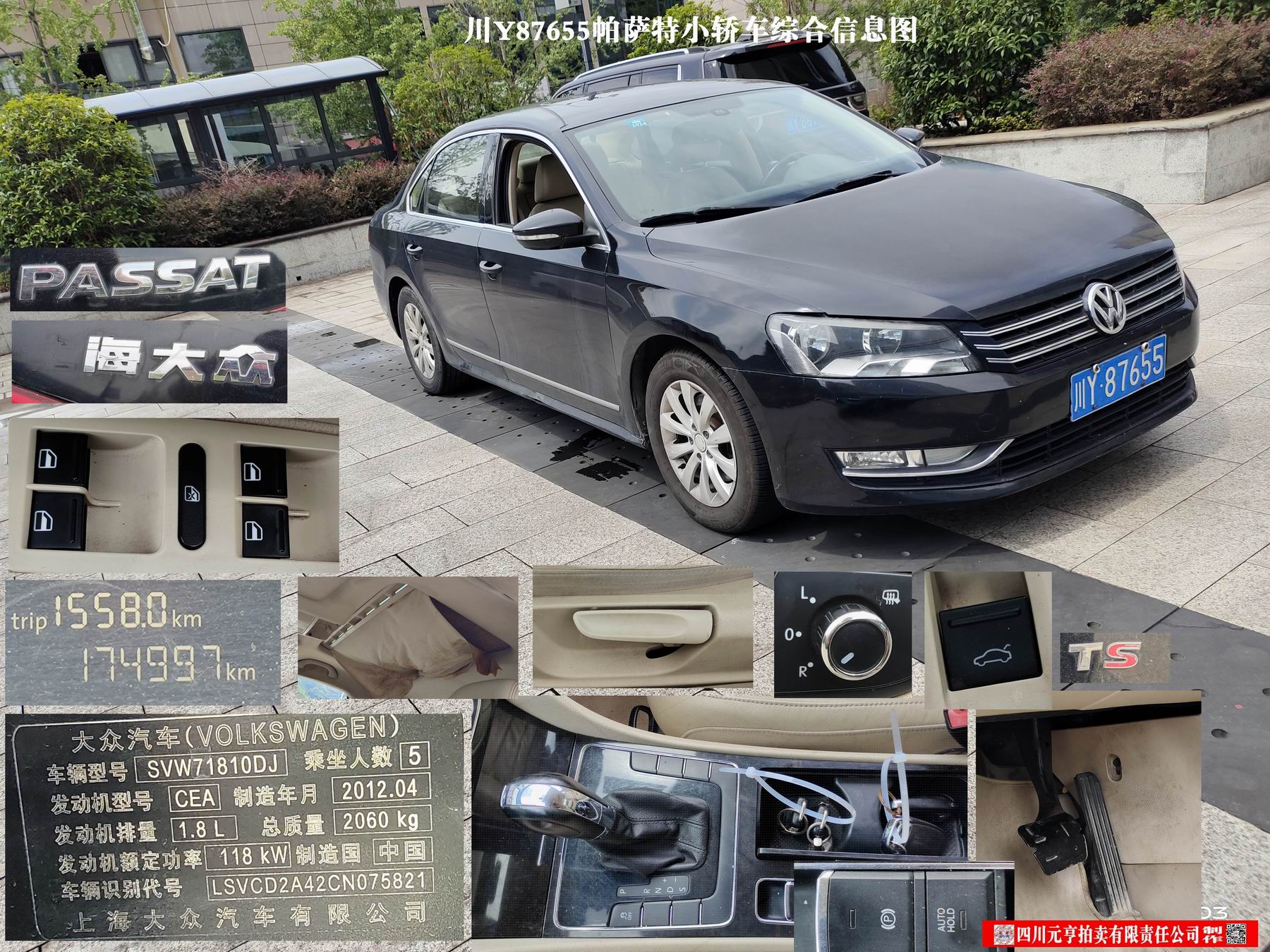 1、大众汽车牌SVW71810DJ 小型轿车1辆【现川Y87655帕萨特】,起拍价3680元。
