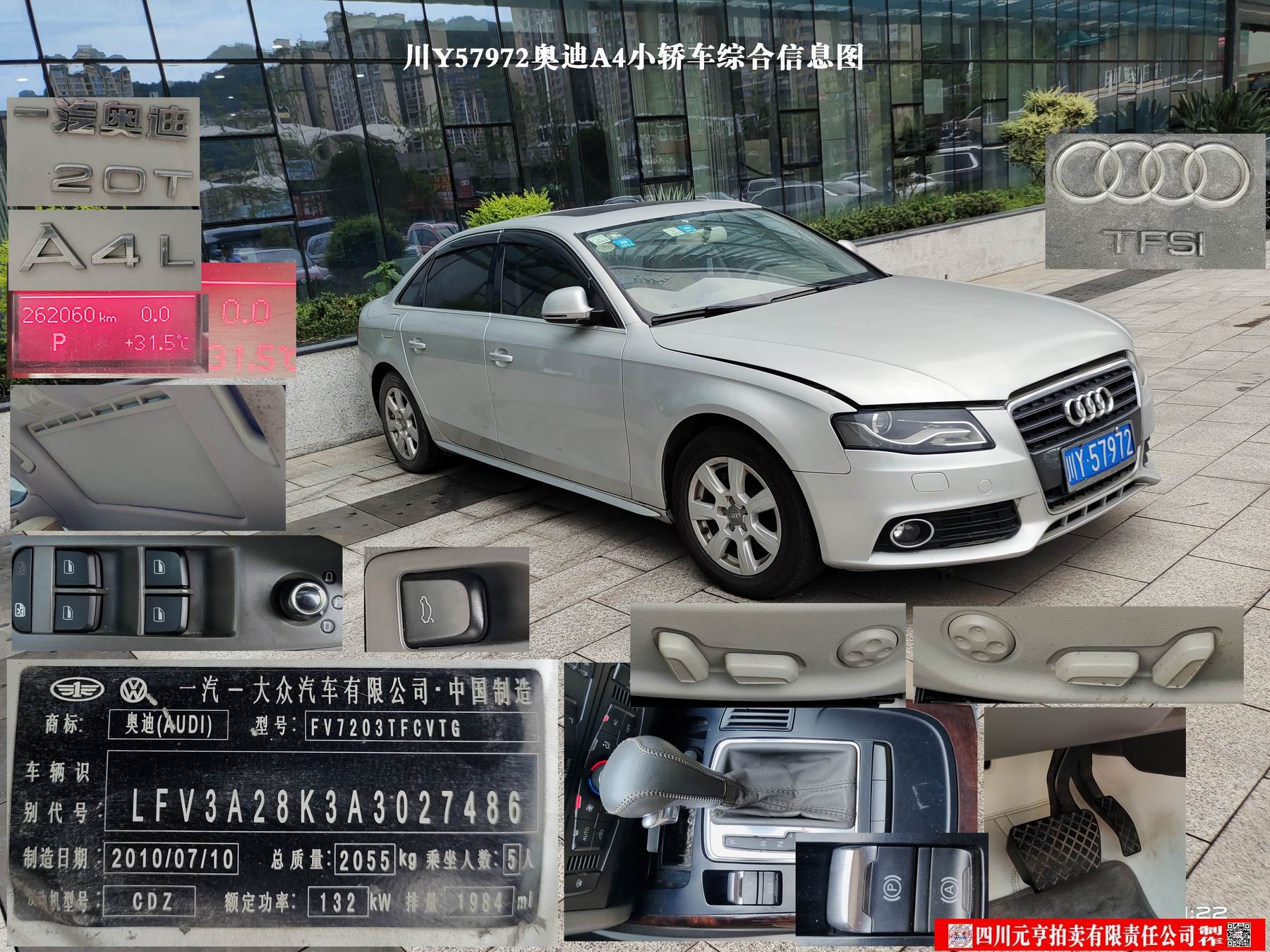 2、奥迪牌FV7203TFCVTG 小型轿车1辆【现川Y57972奥迪A4L】,起拍价9520元。