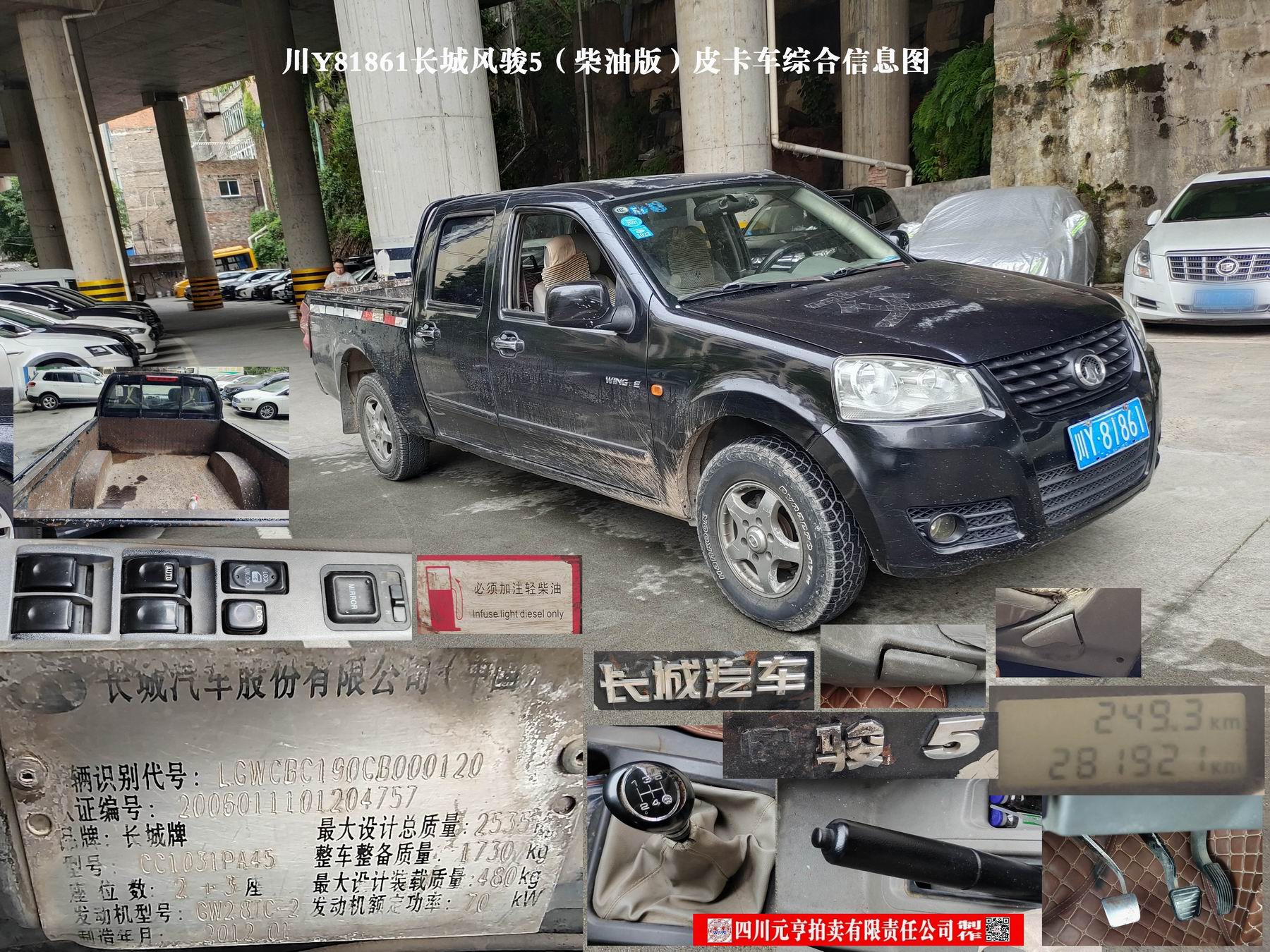 2、长城牌CC1031PA45轻型栏板货车1辆【现川Y81861长城风骏5皮卡】,起拍价3000元。