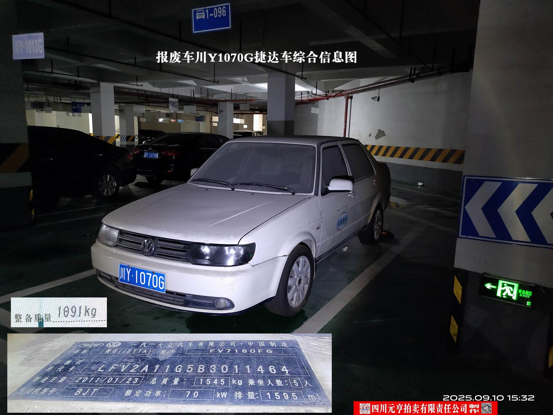 6、报废小轿车1辆【现川Y1070G捷达车】,起拍价1800元(须提供报废资质)。