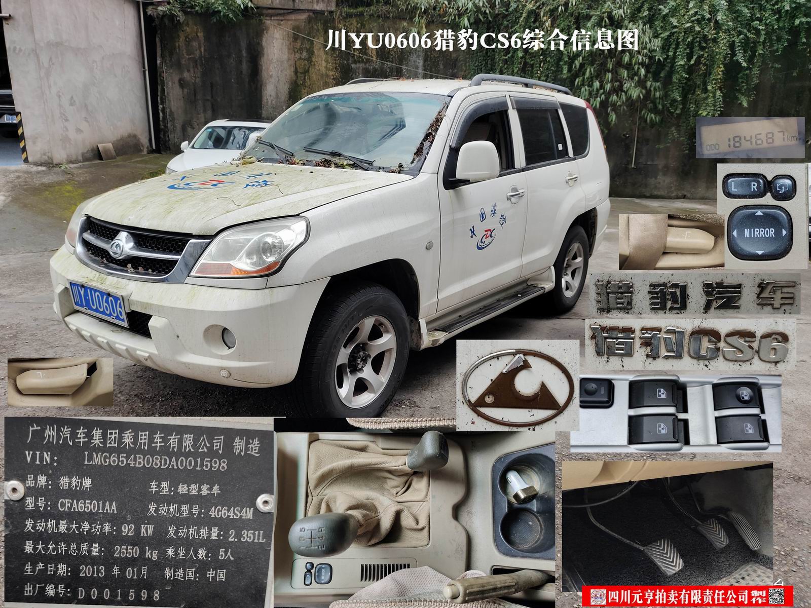 2、猎豹牌CFA6501AA小型普通客车1部【现川YU0606猎豹CS6】,起拍价4100元。