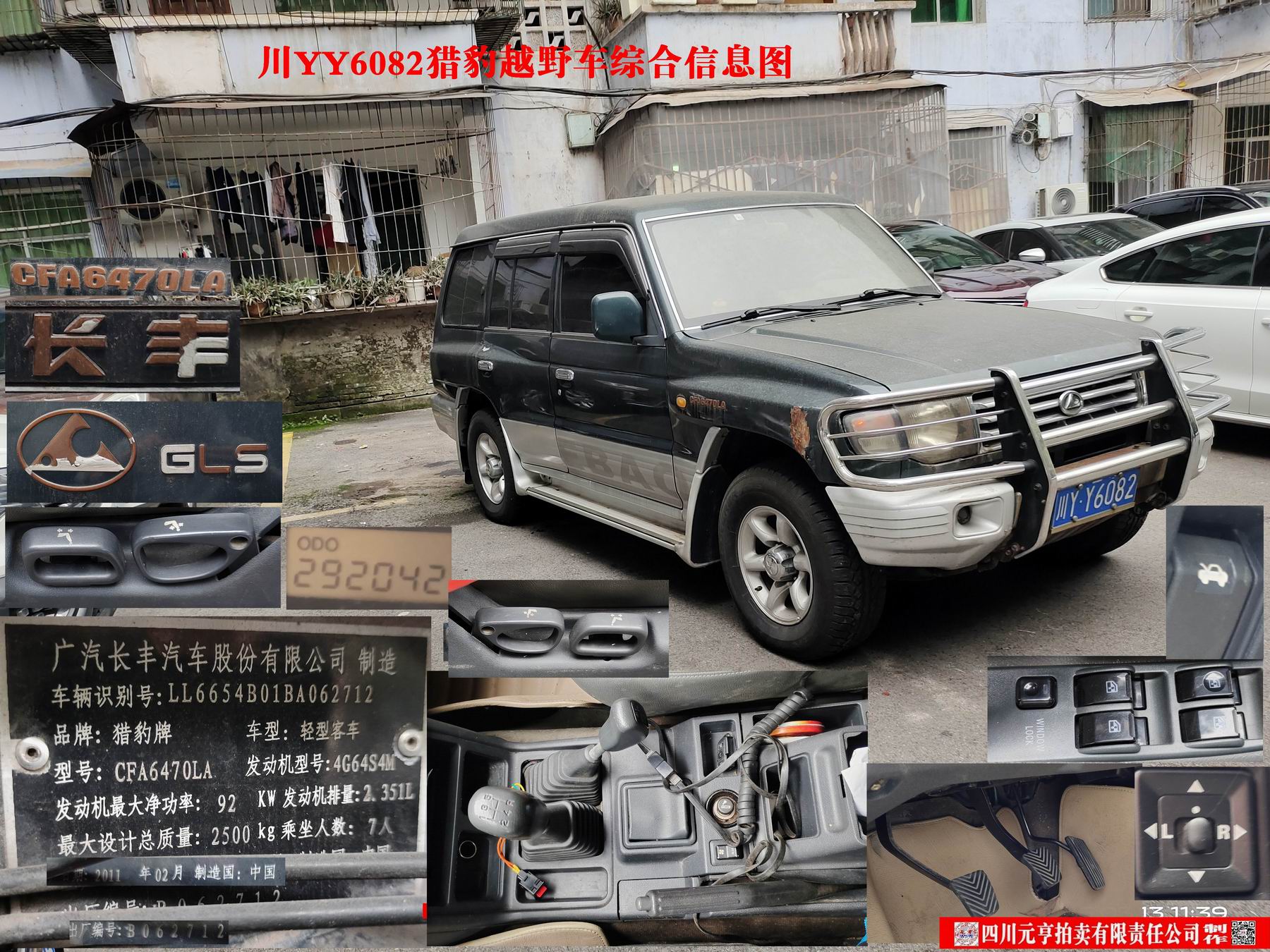 猎豹牌CFA6470LA小型普通客车1部【现川YY6082猎豹黑金刚】,起拍价7200元。
